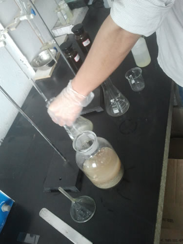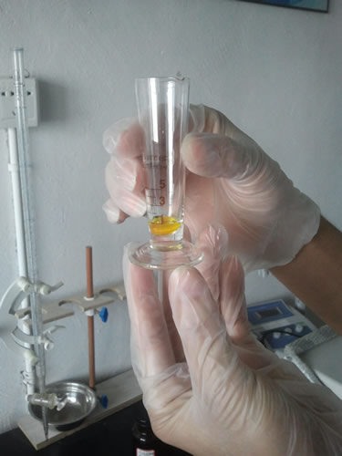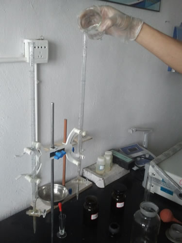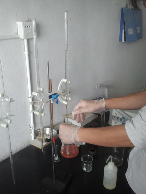 (2)空白试验,用移液管准确吸取50ml蒸馏水到三角瓶内,加入5%铬酸钾指示剂1ml,并用0.01mol/L的硝酸银标准溶液滴定至呈现砖红色为终点,记录消耗的硝酸银标准溶液的毫升数(V2)。